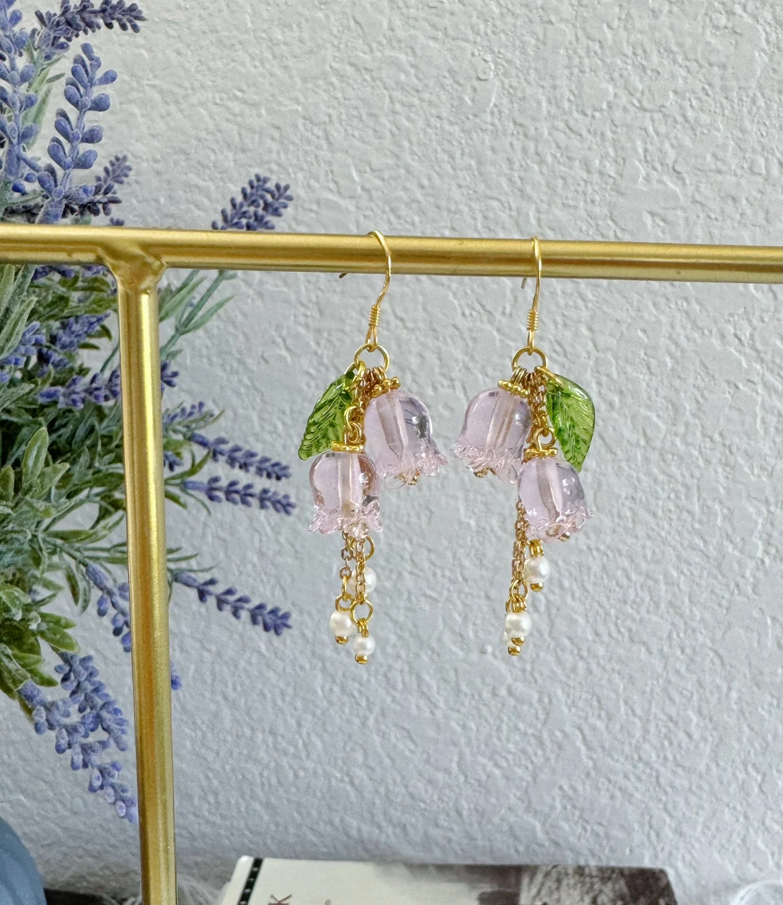 Handmade Crystal Lily of the Valley Earrings: Floral Wedding Jewelry