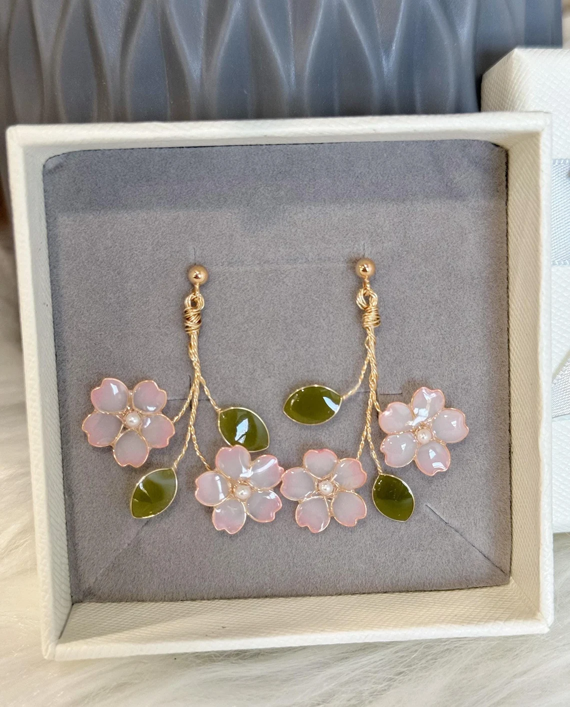 Add a touch of nature-inspired elegance to your jewelry collection with these exquisite handmade resin cherry blossom stud earrings, featuring delicate pink blooms paired with lush green leaves. Each piece is meticulously crafted with care, capturing the timeless beauty of spring in a wearable form.