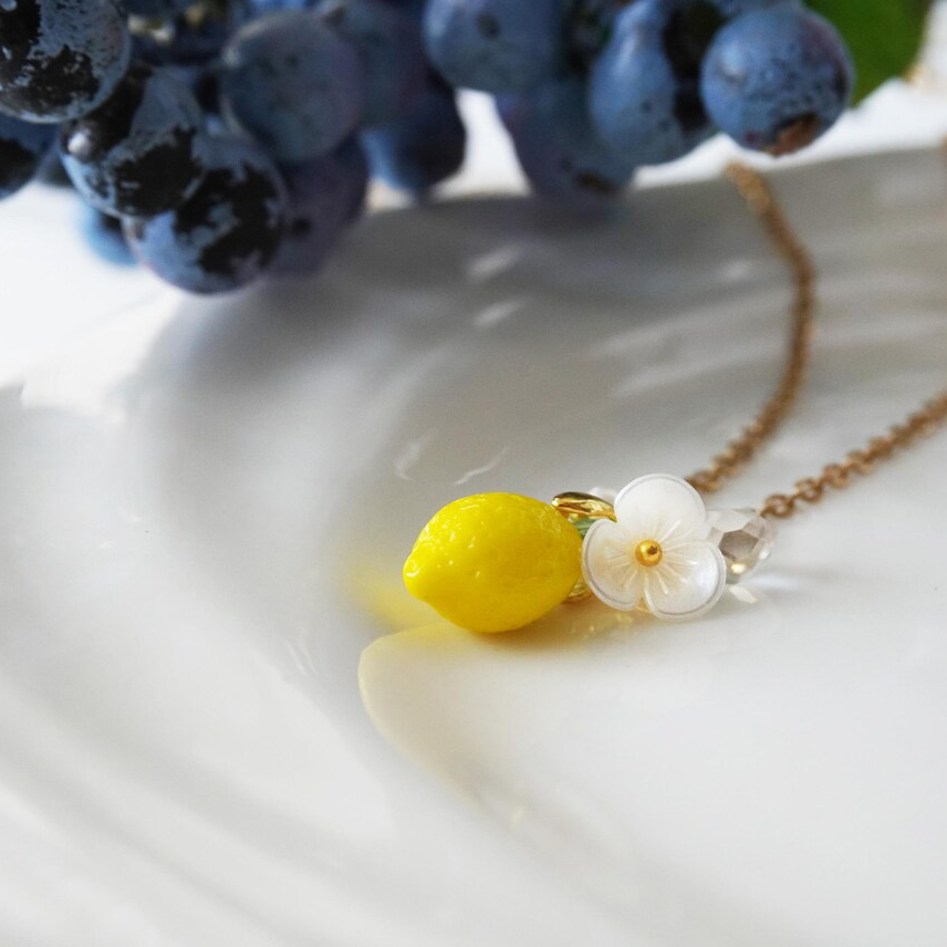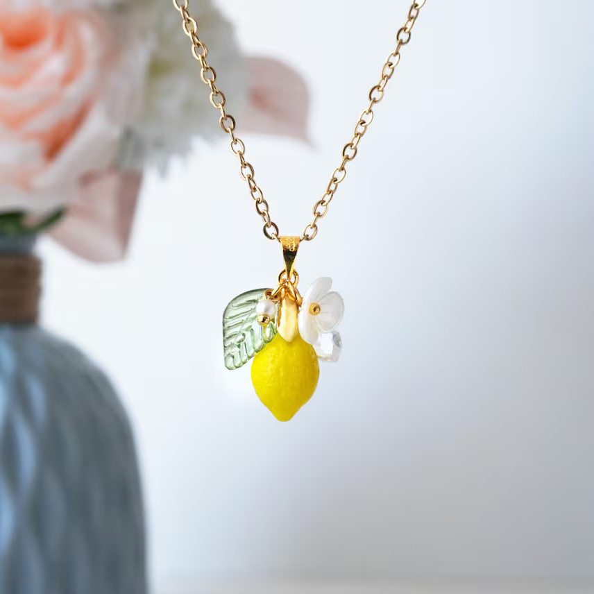 Brighten your style with this refreshing lemon necklace, handcrafted with exquisite Czech glass. Each piece features a beautifully detailed lemon charm paired with a delicate white flower, capturing the charm of summer and citrus gardens.
