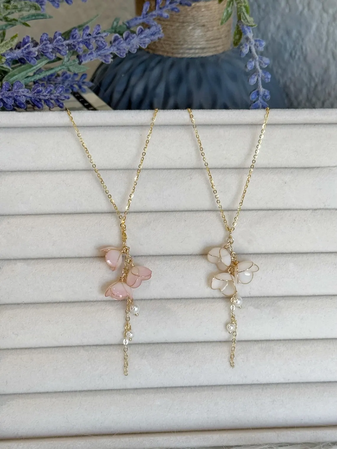 Handmade Lily of the Valley Resin Necklace– Triple Flower Design