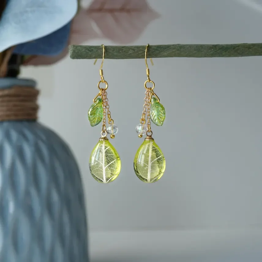 Handmade Resin Leaf Drop Earrings