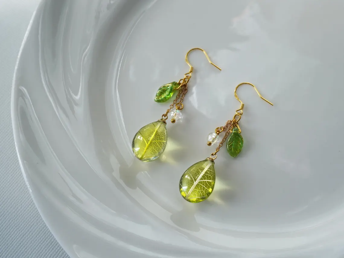 Bring the beauty of nature into your jewelry collection with these delicate resin leaf drop earrings, featuring intricate vein details that mimic real leaves. Carefully handcrafted, these earrings capture the elegance of leaves in a lightweight and wearable design, perfect for nature lovers and botanical jewelry enthusiasts.