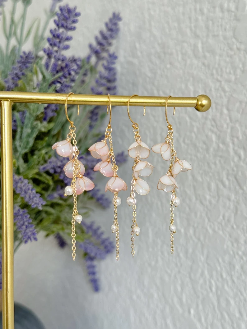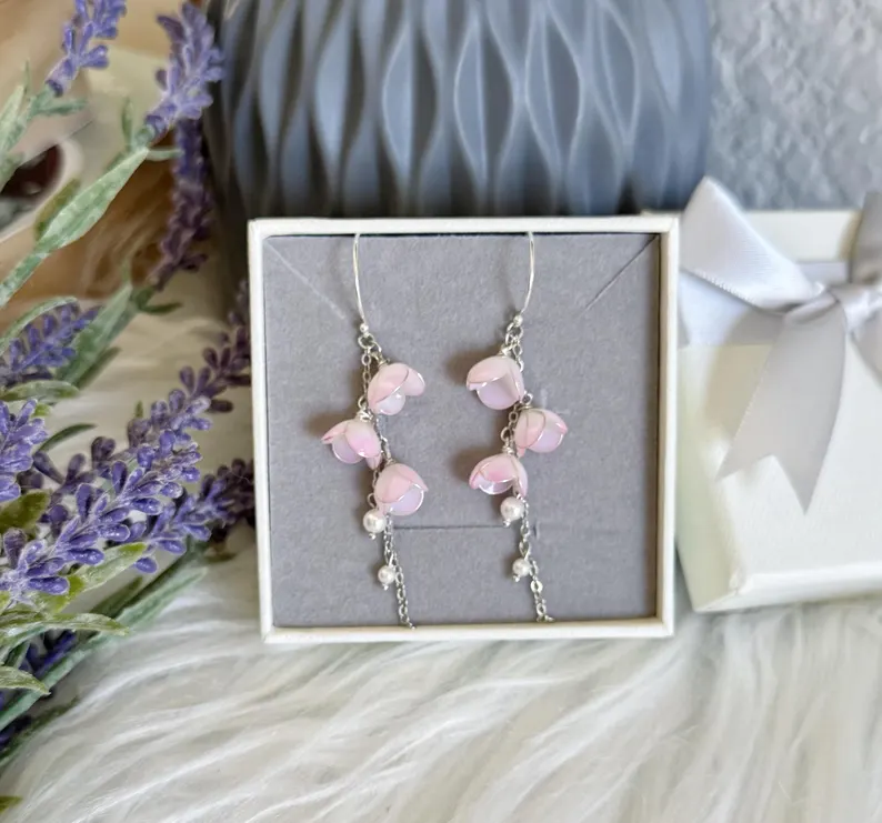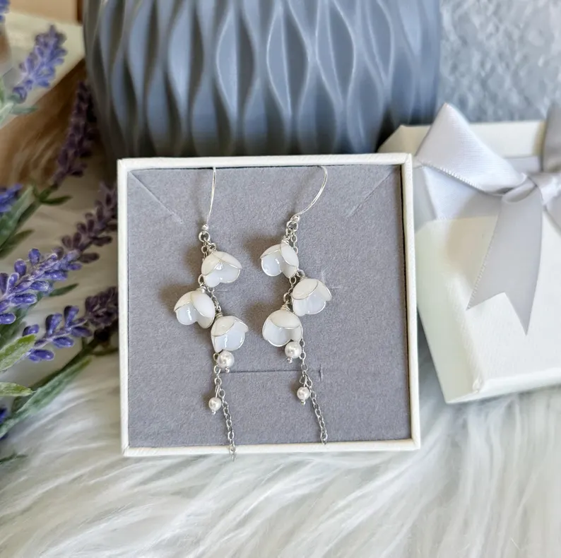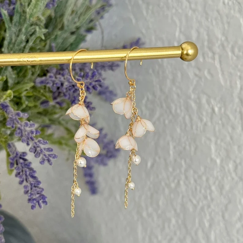Handmade Resin Lily of the Valley Pearl Drop Earrings