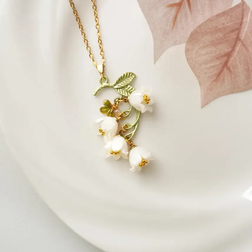 Handmade Resin Lily of the Valley Necklace: Nature-Inspired Floral Pendant