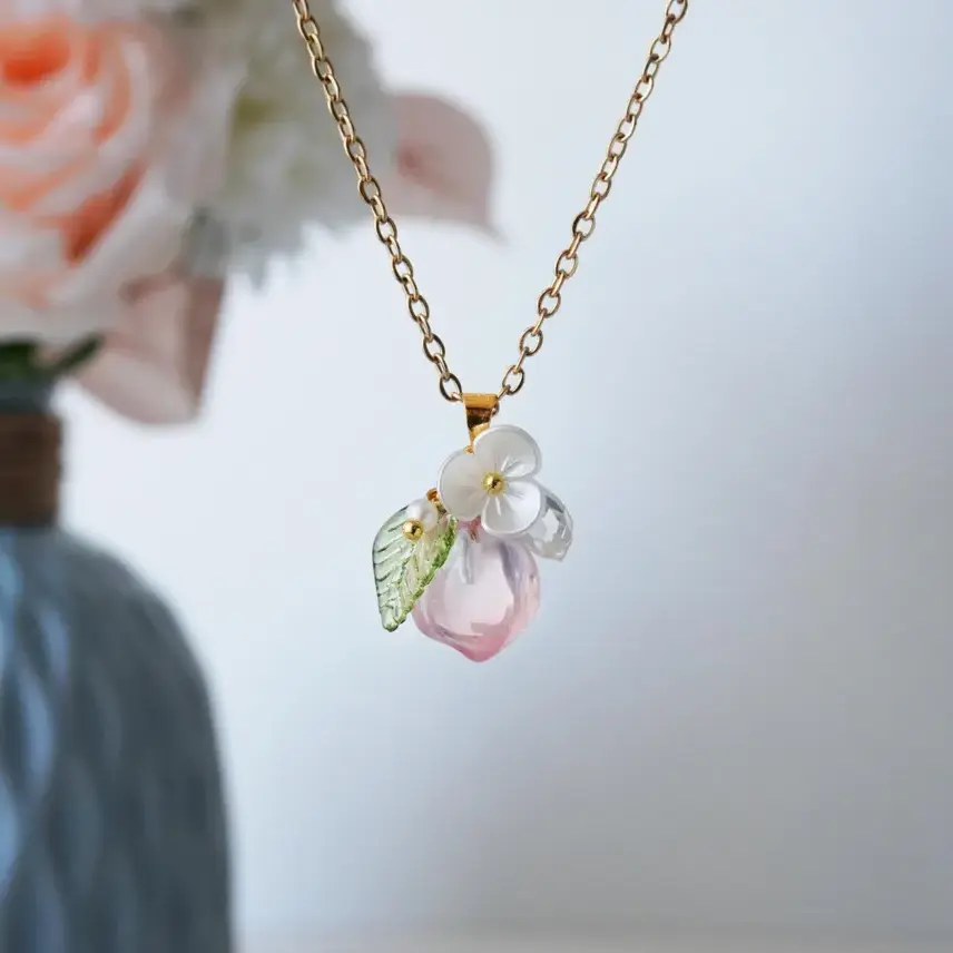 Handmade Resin Peach Necklace – A Touch of Nature-Inspired Elegance