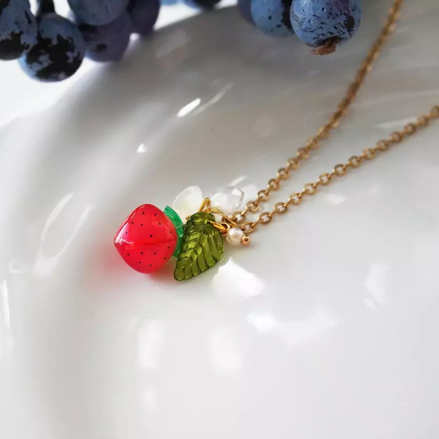 Handmade Resin Strawberry Necklace – A Touch of Nature-Inspired Elegance