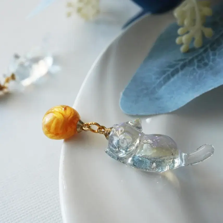 Add a touch of playful sparkle to your day with these handmade holographic resin cat earrings! Each earring features a sleek cat silhouette dangling below a colorful resin orb, available in multiple colors. The iridescent finish shifts beautifully in the light, giving your outfit a fun and magical twist.